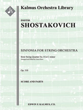 Dmitri Shostakovich's String Quartet No. 8 in C minor, Opus 110 is dedicated to "The Memory of the Victims of Fascism and War." The work was composed in three days during July, 1960. The Quartet is autobiographical and uses themes from earlier works. The opening theme is an adaption of the composer's name to German sounds: (D-S-C-H). This string orchestra version enhances the deep emotion of this significant work of Shostakovich. The integrity of the phrasing and articulation of the urtext edition has been respected in this edition of Shostakovich's Quartet No. 8.